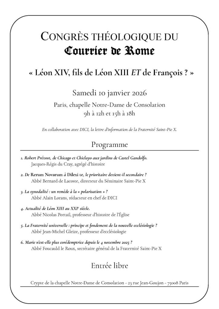 Depuis 1988, avec plus de 50 ouvrages publiés et des congrès internationaux reconnus, le Courrier de Rome reste un phare dans la tempête de la crise ecclésiale.